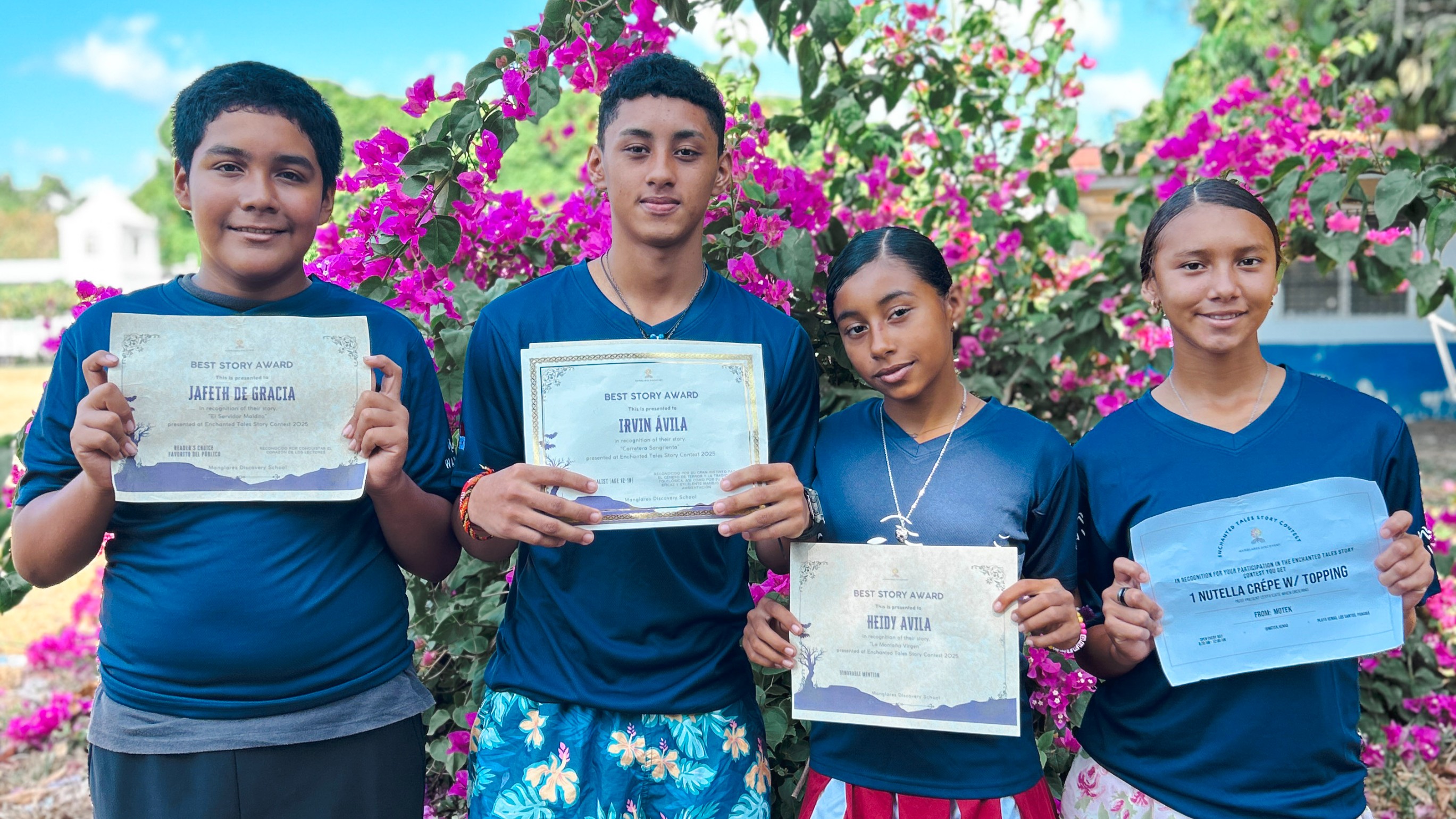 Celebramos con orgullo nuestros estudiantes ganadores del concurso ‘Cuentos Encantados’, organizado por Manglares Discovery School: Heydi Ávila – Mención honorífica por “La montaña virgen” Irvin Ávila – Premio a la historia más aterradora con “Carretera Sangrienta” Jafeth de Gracia – Readers’ Choice con “El servidor maldito” Lizary Ríos – Reconocimiento por “El espanto blanco que flota en la noche”